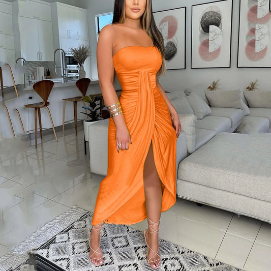 Women’S Sexy Bodycon Strapless Spit Dew Shoulder Dress Fashion Slim Sleeveless Tunic Woman Summer Evening Party Maxi Dresses