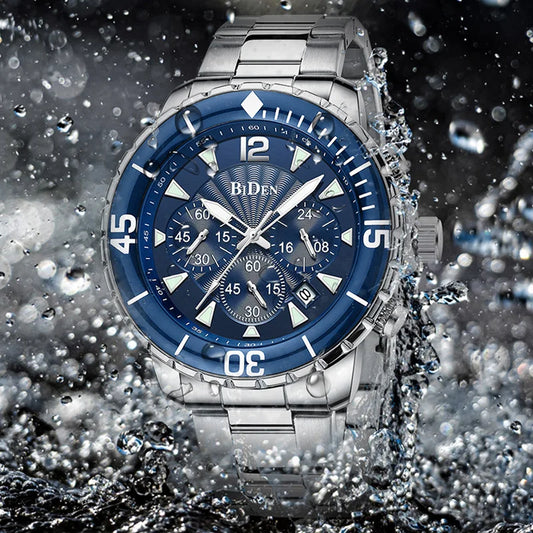 Luxury Blue Watch Men Top Brand BIDEN 3ATM Waterproof Classic Golden Blue Chrono Business Casual Men Wristwatch Gifts for Men